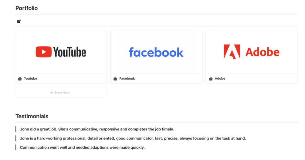 With this sleek and powerful Notion template, you can effortlessly catalog your work, track client projects, and present a professional, shareable resume to potential clients or employers.