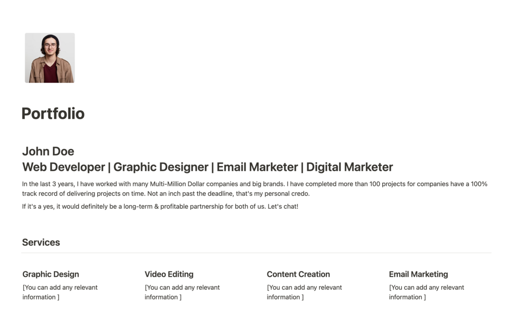 - Custom Templates: Ready-to-use templates for project details, client feedback, and skill showcases.